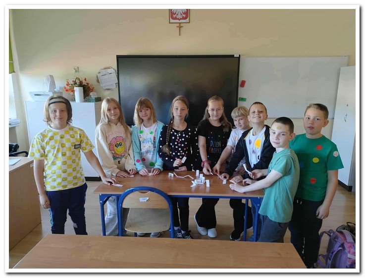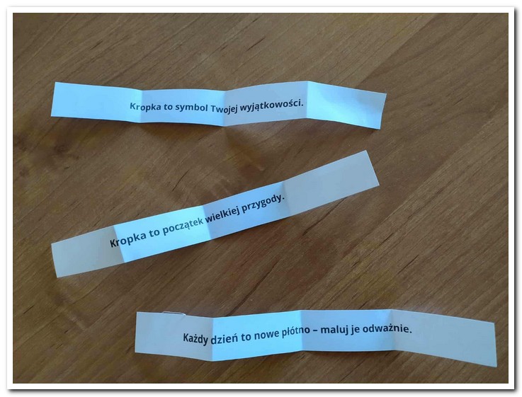 Dziś obchodziliśmy Dzień Kropki – wyjątkowe święto kreatywności, odwagi i zabawy. Uczniowie przyszli do szkoły w ubraniach ozdobionych kropkami. Dzieci, które miały na sobie kropki, nie były pytane na lekcjach, co sprawiło im dużo radości.