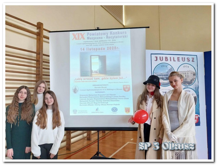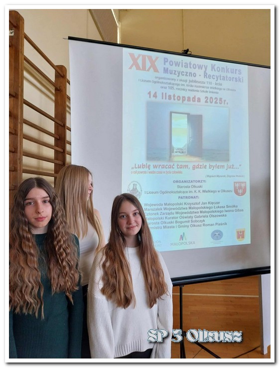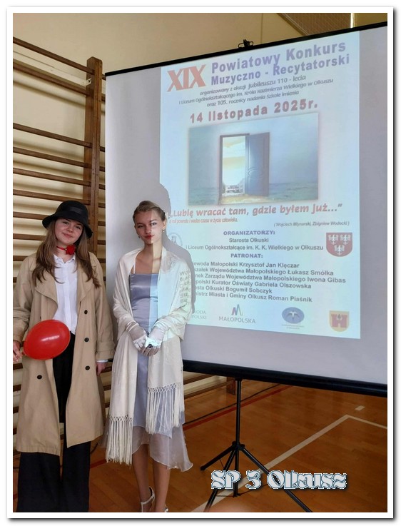 W piątek, 14 listopada br. odbył się XIX Powiatowy Konkurs Muzyczno - Recytatorski. Mottem tegorocznej edycji były słowa piosenki Wojciecha Młynarskiego i Zbigniewa Wodeckiego „Lubię wracać tam, gdzie byłem już..." Uczestnicy – uczniowie szkół podstawowych i ponadpodstawowych śpiewalii recytowali utwory na temat roli powrotu i wadze czasu w życiu człowieka. Tematyka Konkursu podyktowana została niezwykłym, sprzyjającym takim refleksjom jubileuszom, które w roku szkolnym 2025/2026 obchodzi I Liceum: 110-lecie istnienia Szkoły, 105-lecie nadania Szkole im. Króla Kazimierza Wielkiego w Olkuszu, 50. rocznicę funkcjonowania liceum w tym budynku przy ul. Polnej 8.