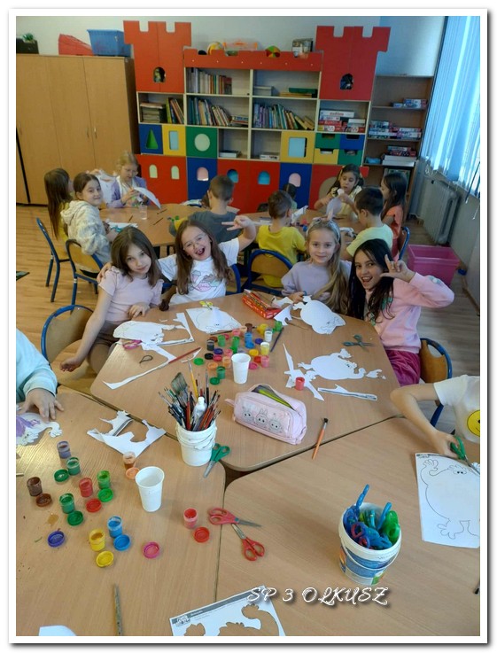 Dzisiaj w naszej świetlicy obchodziliśmy Dzień Życzliwości, który stał się okazją do rozmów o dobrym zachowaniu, empatii i wzajemnym szacunku. Dzieci obejrzały film edukacyjny poświęcony znaczeniu życzliwości w codziennym życiu, a następnie dzieliły się swoimi spostrzeżeniami i przykładami miłych gestów.Kolejnym etapem była praca plastyczna wykonywana farbami – uczniowie malowali "Stworki życzliwości". Zajęciom towarzyszyło słuchanie piosenek o przyjaźni i dobrym traktowaniu innych, co wprowadziło miłą i pozytywną atmosferę.