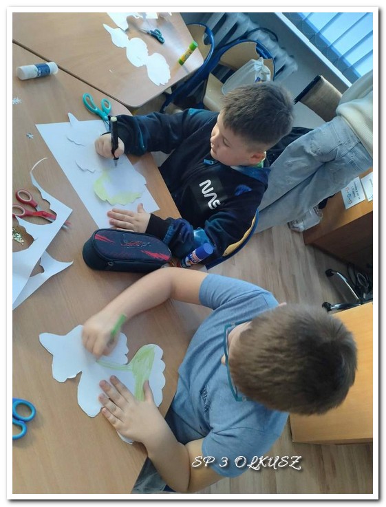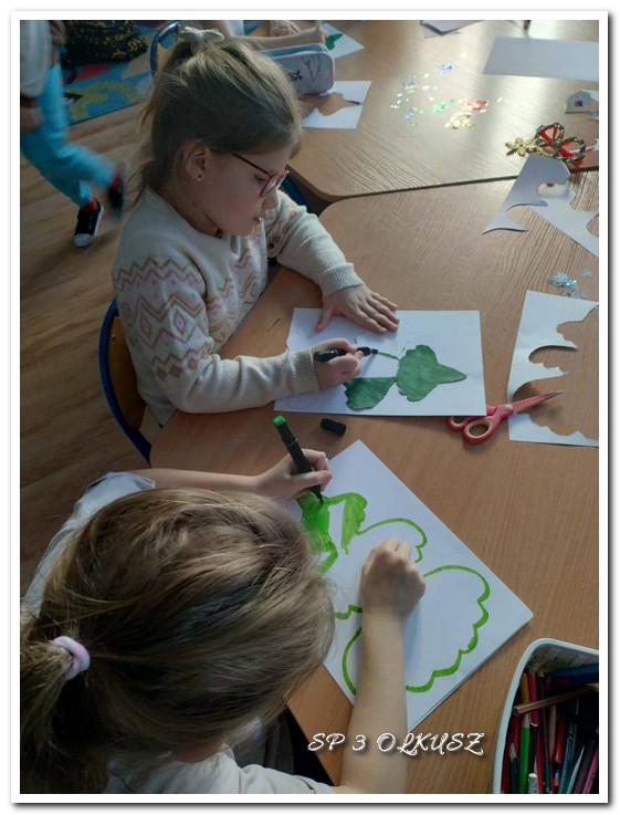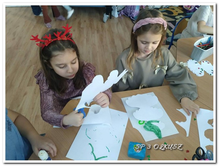 Dzisiejsze zajęcia w świetlicy przebiegały w świątecznej atmosferze. Dzieci wykonywały prace plastyczno-techniczne pt. „Świąteczna choinka", rozwijając swoją kreatywność i zdolności manualne. Podczas zajęć słuchały oraz śpiewały kolędy, co pozwoliło im poczuć magię zbliżających się Świąt Bożego Narodzenia.