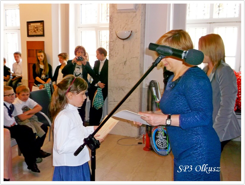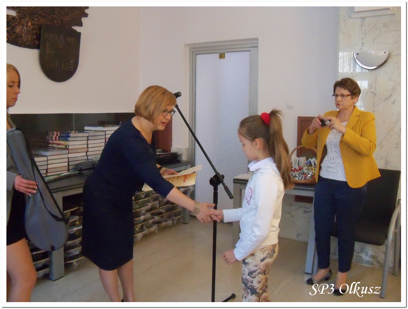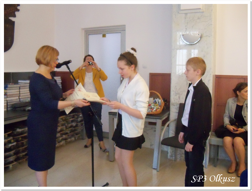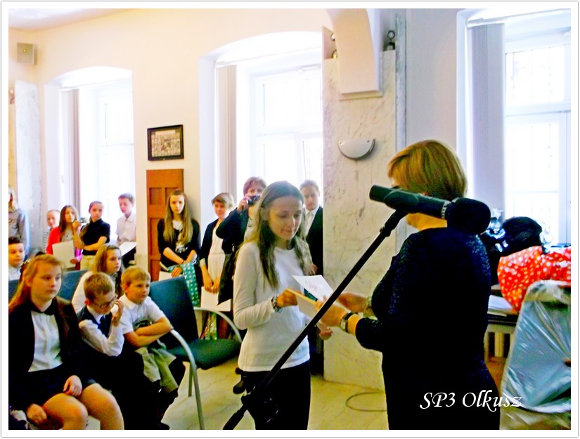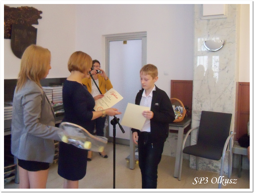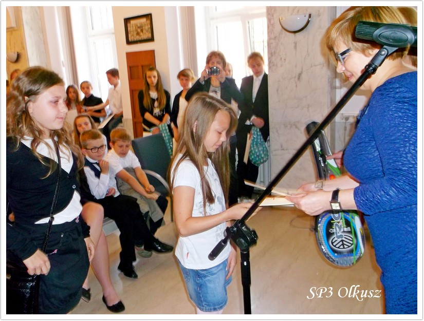 W poniedziałek 16.06.2014 r. 14 uczniów klas I – VI pod opieką pedagoga szkolnego mgr Jadwigi Bargieł udało się do Urzędu Miasta i Gminy na rozdanie nagród za udział w Wielkim Konkursie Profilaktycznym 2014. Pełnomocnik Burmistrza ds. Profilaktyki i Przeciwdziałania Uzależnieniom mgr Bogusława Lasota wręczyła nagrody uczniom ze wszystkich szkół Miasta i Gminy Olkusz, które brały udział w w/w Konkursie.
