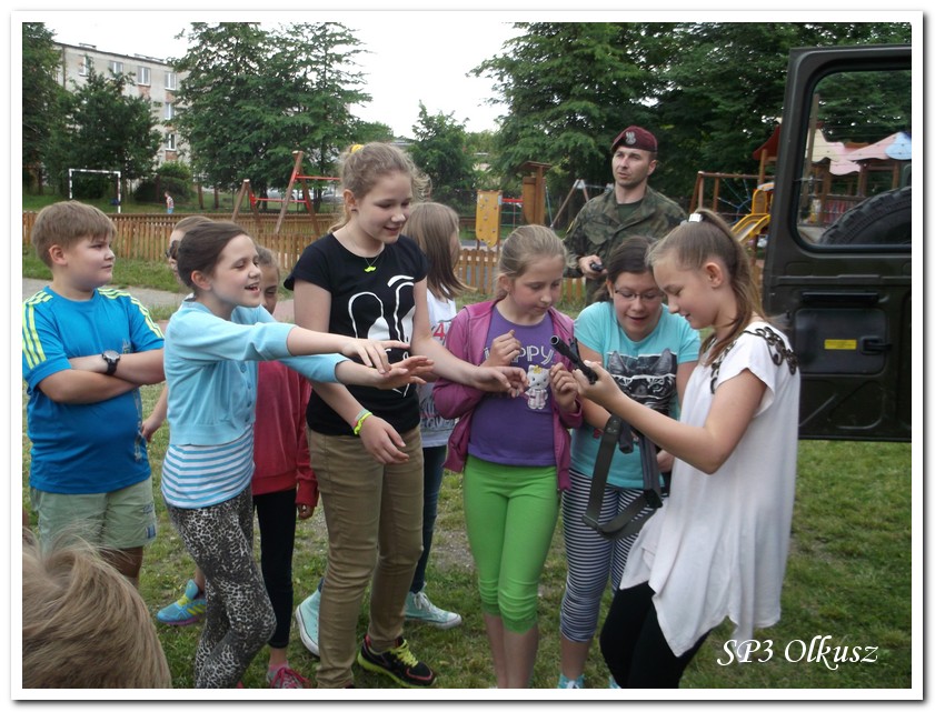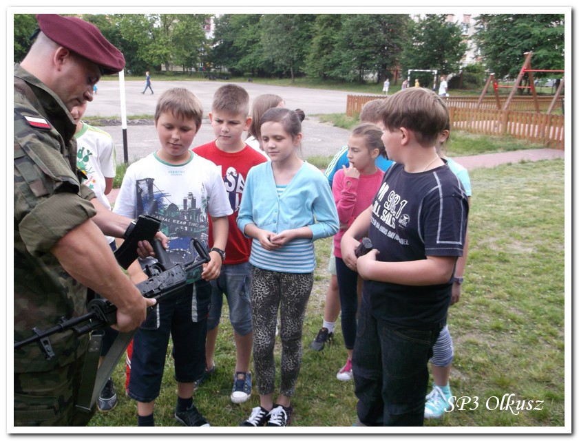 Wakacje tuż, tuż. To czas odpoczynku, który w większości spędzamy na świeżym powietrzu. Wielu uczniów wyjedzie w różne strony kraju czy świata, by przeżyć wspaniałe przygody, czego życzą im z całego serca Dyrektor i całe grono pedagogiczne SP 3 . Ale Dyrektor pragnie, żeby te przygody szczęśliwie się zakończyły i dlatego też w trosce o bezpieczeństwo naszych uczniów do szkoły zostali zaproszeni żołnierze Wojska Polskiego z 16 Batalionu Powietrzno- Desantowego JW 4495 z Krakowa.