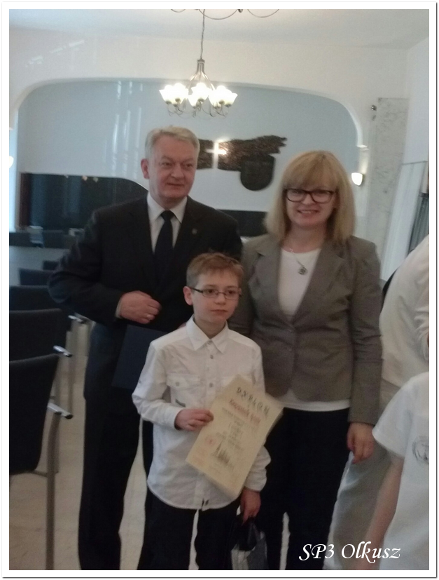 21 maja 2014 roku w Urzędzie Miasta i Gminy Olkusz odbyło się podsumowanie konkursu wiedzowego i plastycznego „Olkusz moje miasto" i rozdanie nagród laureatom. Nagrodę i dyplom z rąk burmistrza dr Włodzimierza Łysonia odebrał nasz uczeń Krzysztof Roś , który wykazał się największą wiedzą o naszym mieście i zajął I miejsce wśród uczniów klas I-III.