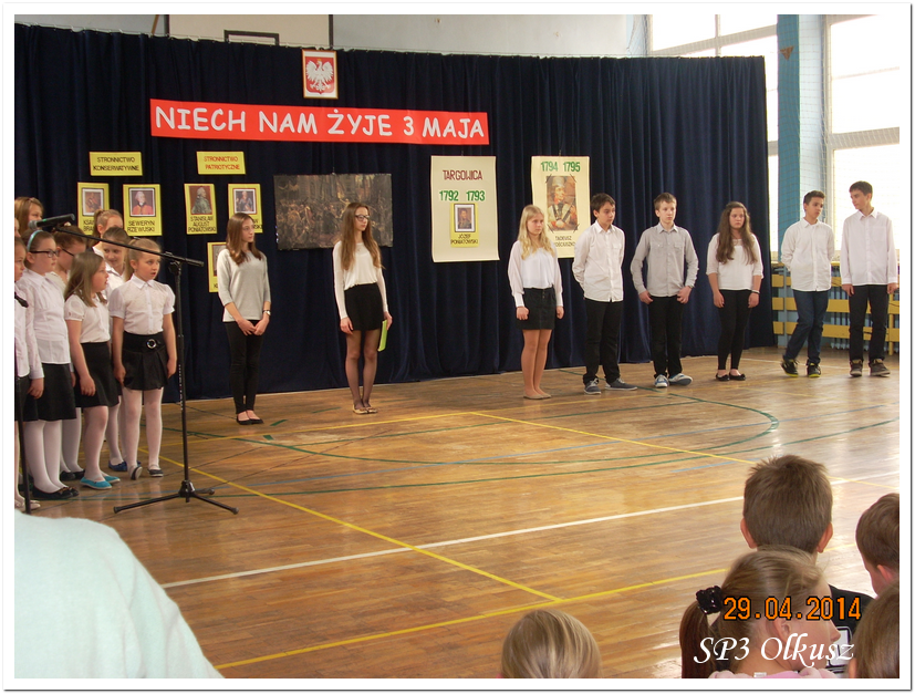 29 kwietnia 2014 r. w naszej szkole odbyła się uroczysta akademia poświęcona uchwaleniu Konstytucji Majowej. Uczniowie klas szóstych, przygotowani przez panią Krystynę Kocjan, przypomnieli swoim młodszym kolegom, dlaczego dzień jej uchwalenia jest dziś naszym świętem narodowym.