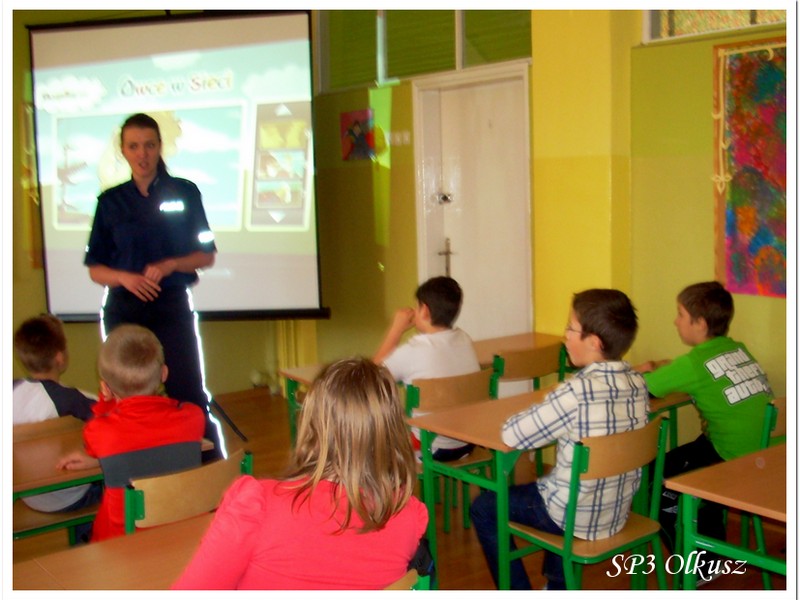 Dnia 06.05.2014 r. uczniowie klas IV a, b uczestniczyli w spotkaniu, którego tematem było „Zagrożenia w Sieci - profilaktyka i reagowanie". Spotkanie prowadziła pani Katarzyna Matras - młodszy aspirant Zespołu ds. Nieletnich i Patologii w Komendzie Powiatowej Policji w Olkuszu.