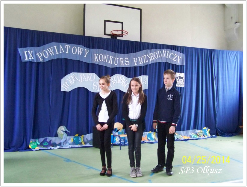 25 kwietnia 2014 r. uczniowie naszej szkoły wzięli udział w II etapie Powiatowego Konkursu Przyrodniczego ,, Woda jako środowisko życia''. Konkurs został zorganizowany przez opiekunów szkolnych kół LOP oddziału Olkusz w SP nr 1 w Olkuszu.