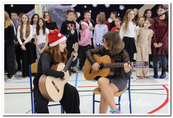 Tegoroczna koncepcja Jasełek przewidziała również niemałą muzyczną gratkę, gdyż każda z klas miała przygotować jedną kolędę, którą zaintonowała na scenie. Każda klasa wykonała zadanie zawodowo a nasze Jasełka wypełniły cały budynek szkoły śpiewem polskich pięknych kolęd.
