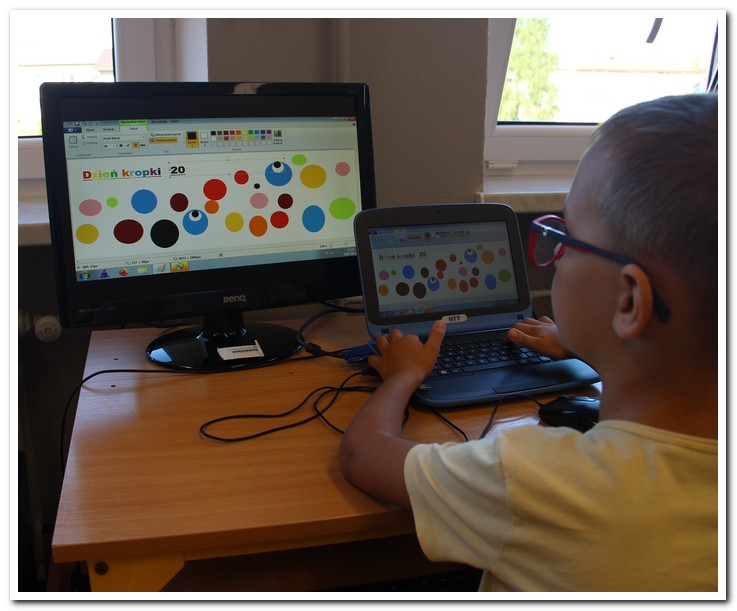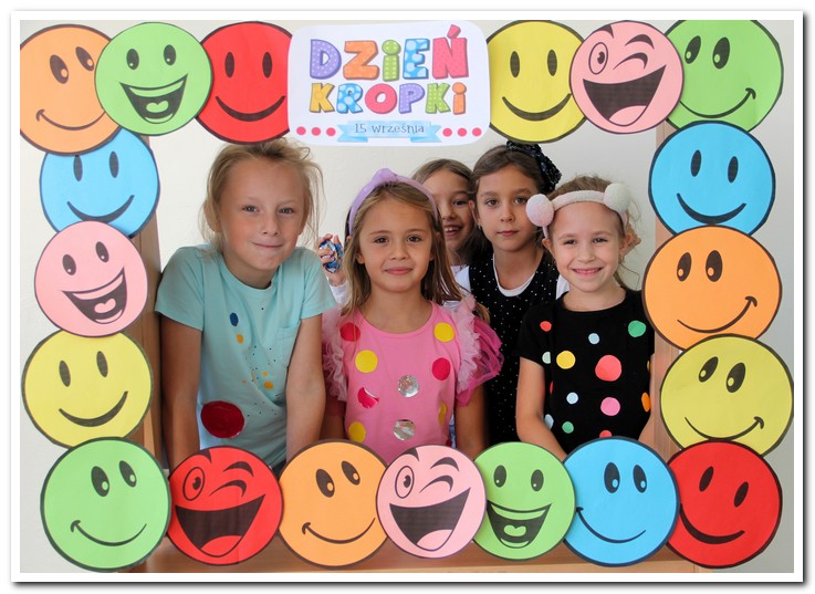 Dziś obchodziliśmy Dzień Kropki – wyjątkowe święto kreatywności, odwagi i zabawy. Uczniowie przyszli do szkoły w ubraniach ozdobionych kropkami. Dzieci, które miały na sobie kropki, nie były pytane na lekcjach, co sprawiło im dużo radości.