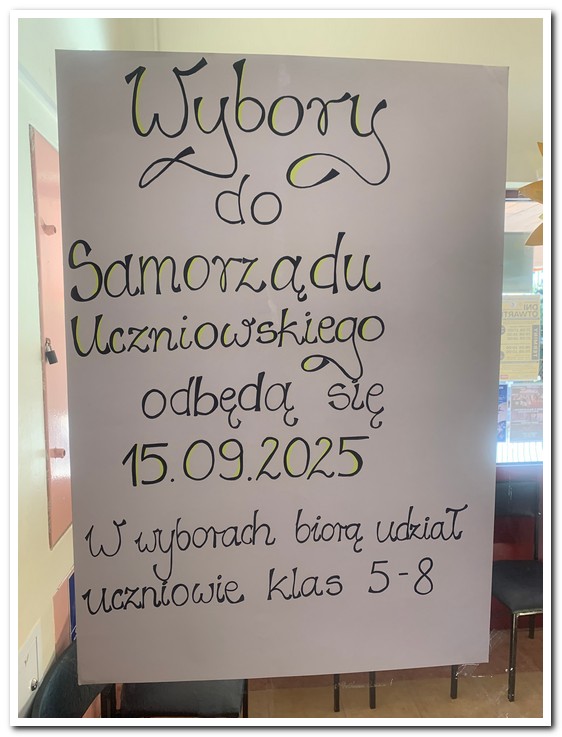15 września 2025 r. w naszej szkole odbyły się demokratyczne wybory do Samorządu Uczniowskiego. Uczniowie klas V–VIII oddawali swoje głosy na wybranych kandydatów. Głosowanie przebiegało w przyjaznej atmosferze i pozwoliło wszystkim uczniom poczuć, jak ważny jest udział w życiu szkolnej społeczności.Największym zaufaniem obdarzeni zostali: