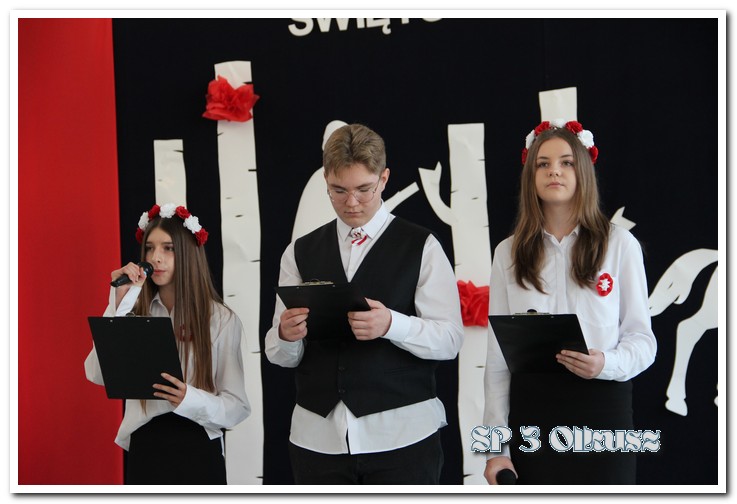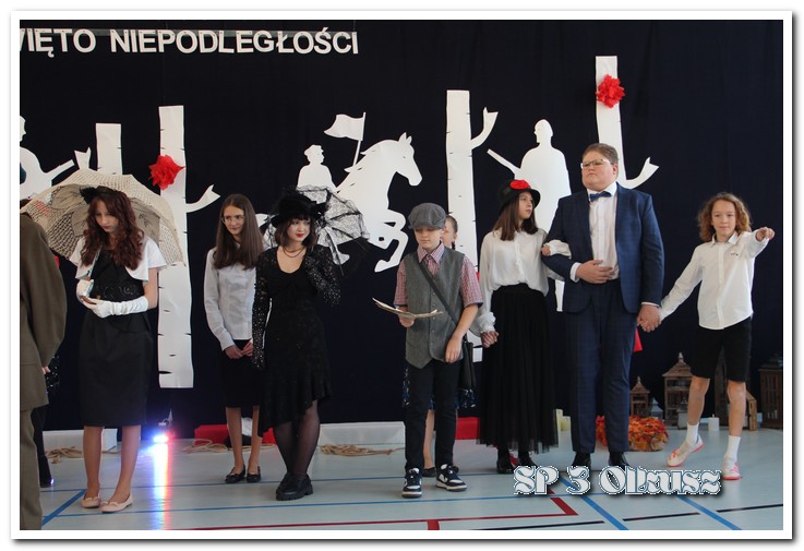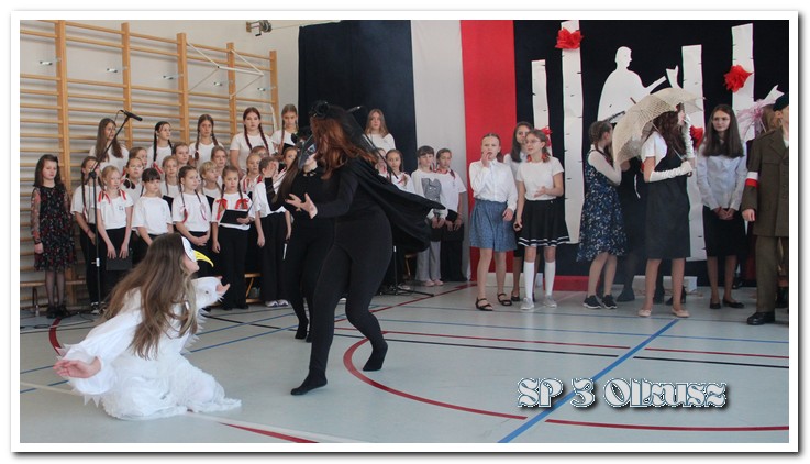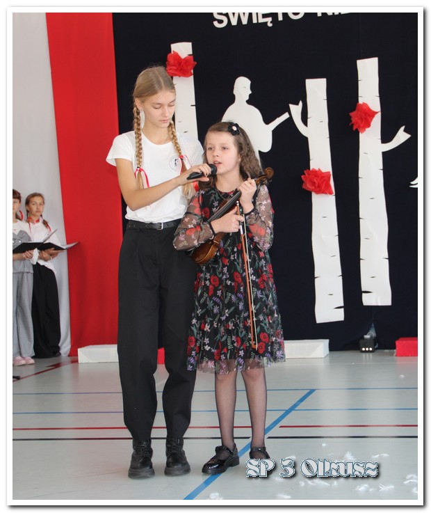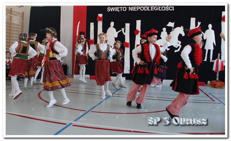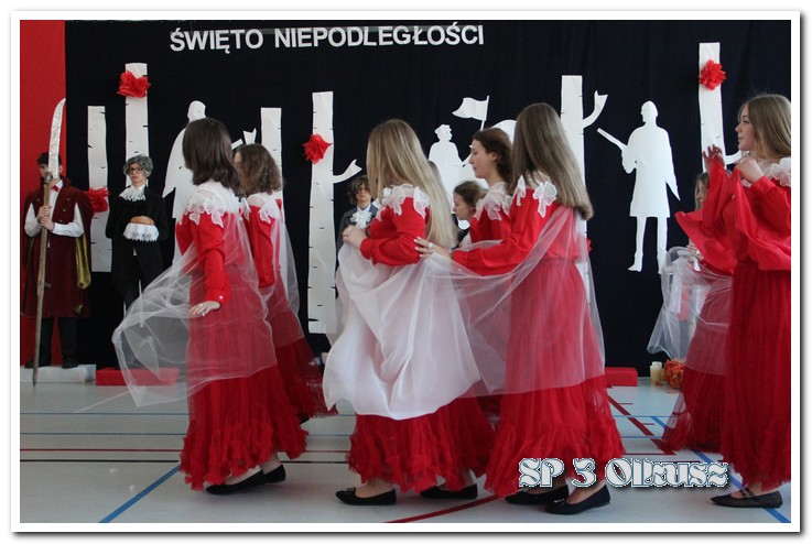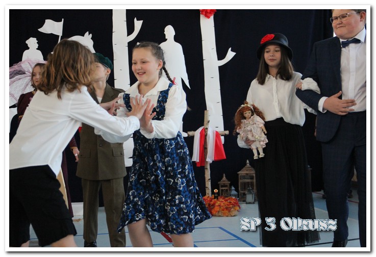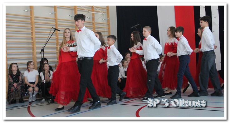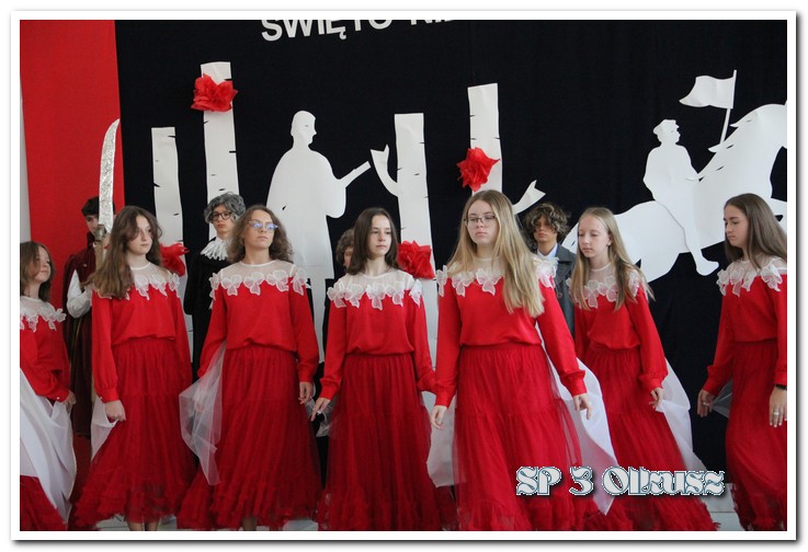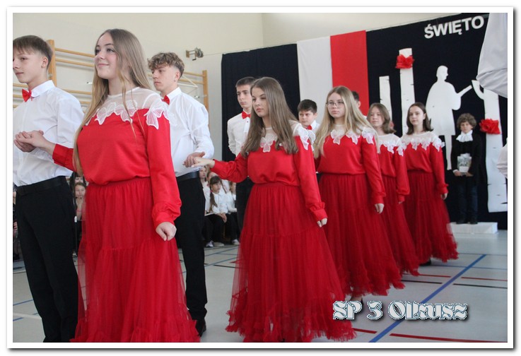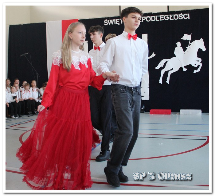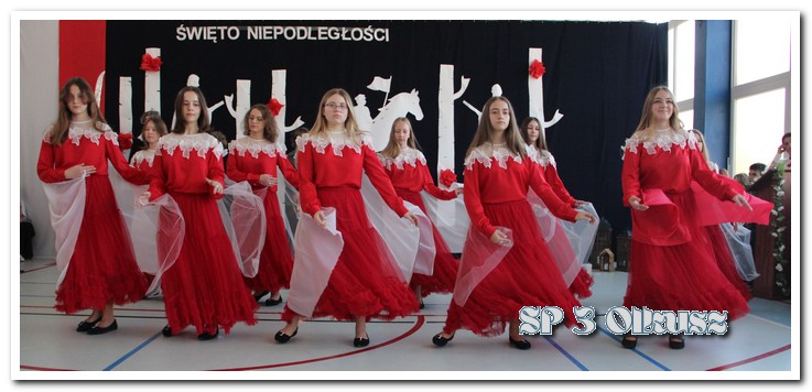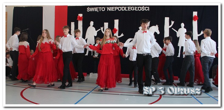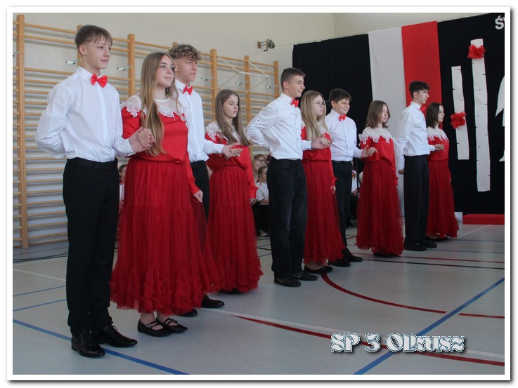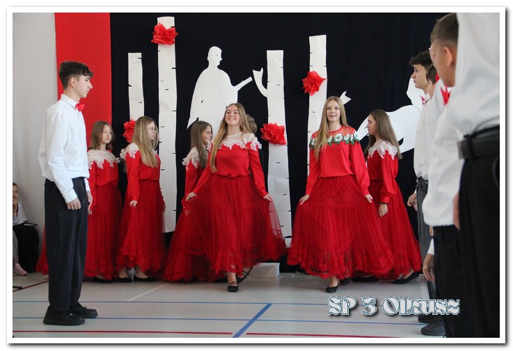 Nie zabrakło również tańców narodowych – trzecioklasiści zatańczyli krakowiaka, a starsi uczniowie – poloneza i walca. Całość zakończyło wspólne odśpiewanie hymnu państwowego oraz pieśni „Za tę wolność". Akademia była pełna emocji i dumy z naszej historii.
