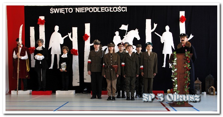 Dnia 7 listopada 2025 roku w naszej szkole odbyła się uroczysta akademia z okazji Narodowego Święta Niepodległości. Uczniowie obejrzeli widowisko słowno-muzyczne pt. „Niepodległość niejedno ma imię", przygotowane przez swoich kolegów i nauczycieli.W programie znalazły się sceny ukazujące trudną drogę Polaków do wolności – pantomima „Upadek Polski", a także wzruszające przedstawienia „Trzy pokolenia" oraz „Wybory patriotów". Uroczystość uświetniły występy muzyczne: chórek szkolny zaprezentował pieśni patriotyczne, a solistki Nadia Bisaga i Kalina Andrzejczyk wykonały nastrojowe utwory. Na pianinie grała Wiktoria Chwast, a na skrzypcach – Zuzia Brzezińska.