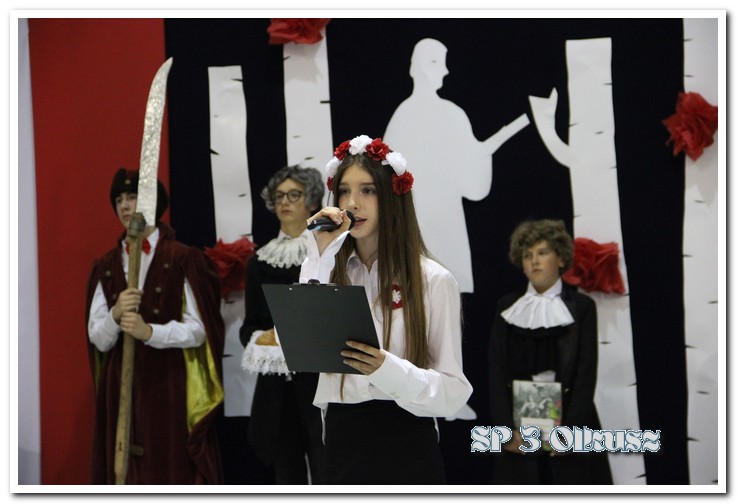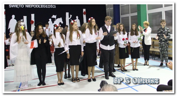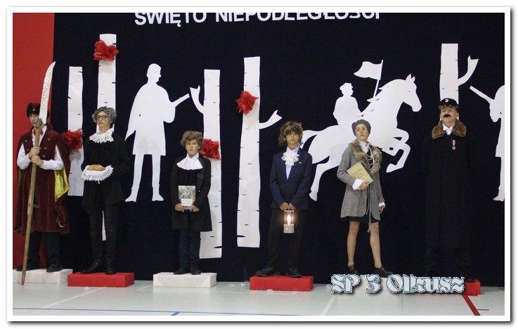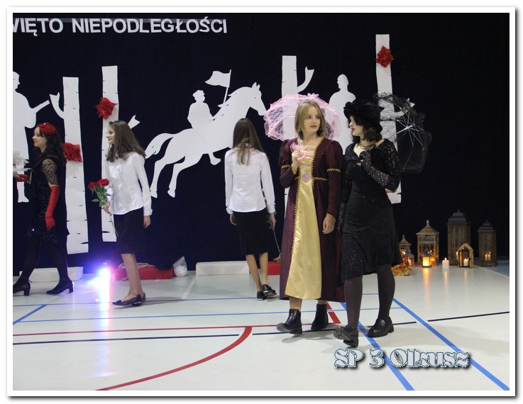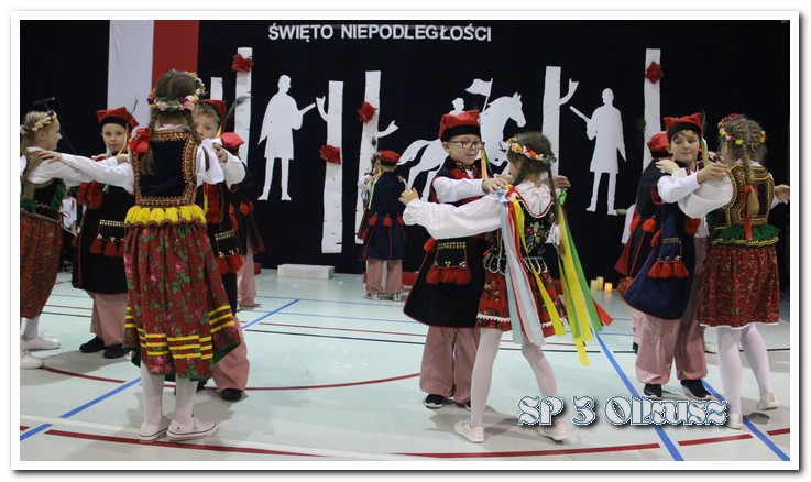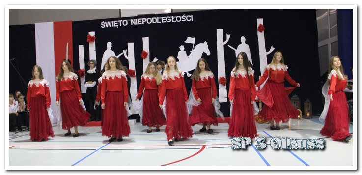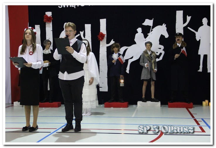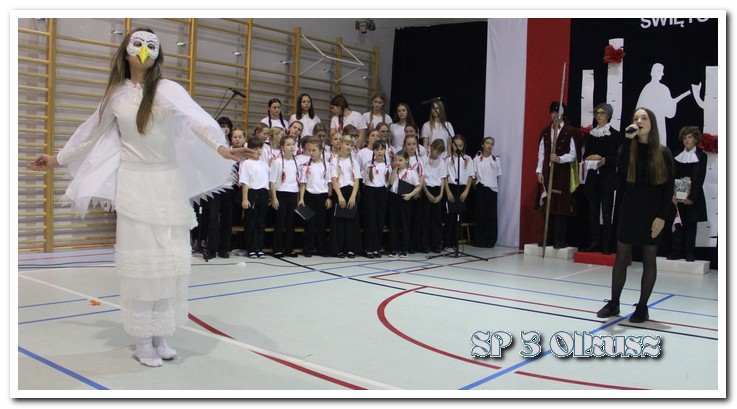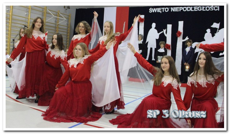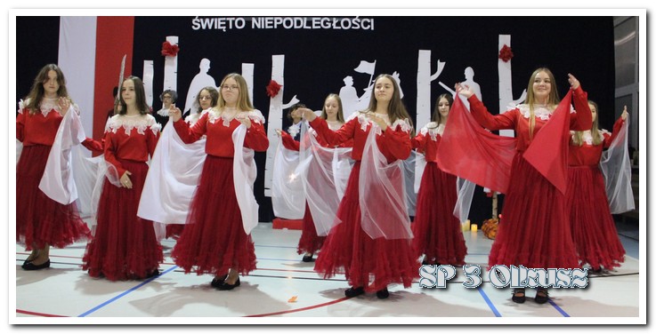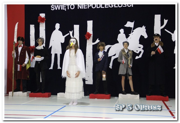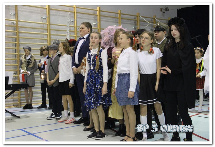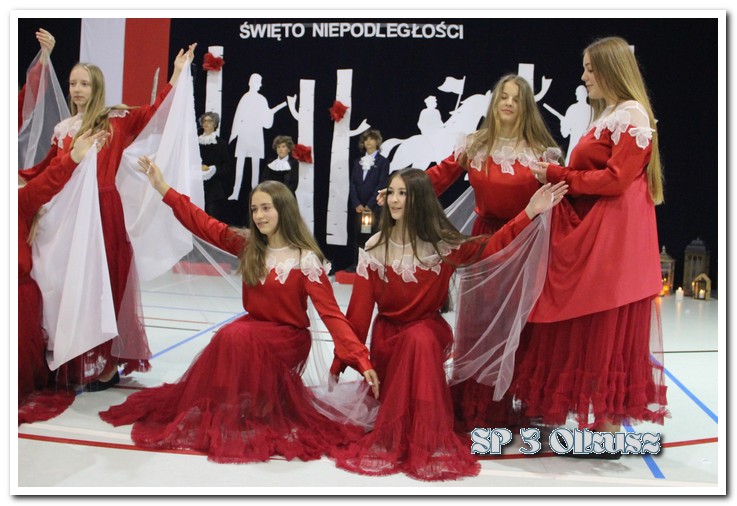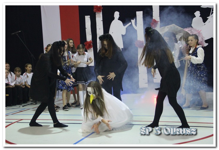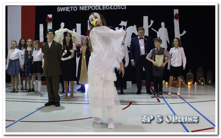 Podczas widowiska słowno-muzycznego „Niepodległość niejedno ma imię" uczniowie zaprezentowali sceny historyczne i patriotyczne, przypominając o drodze naszego narodu do wolności. Publiczność z ogromnym wzruszeniem oglądała pantomimę „Upadek Polski", a także sceny „Trzy pokolenia" i „Wybory patriotów".