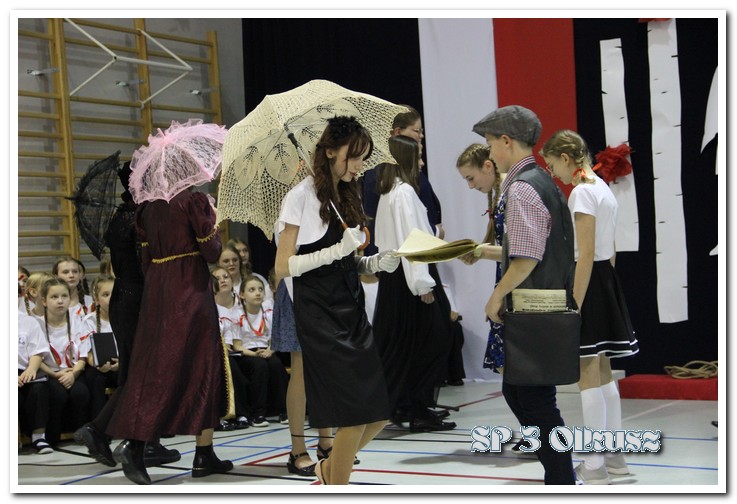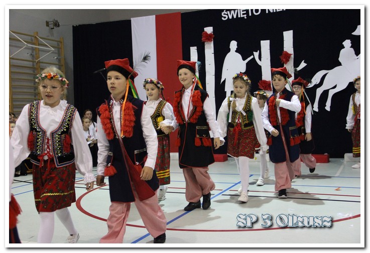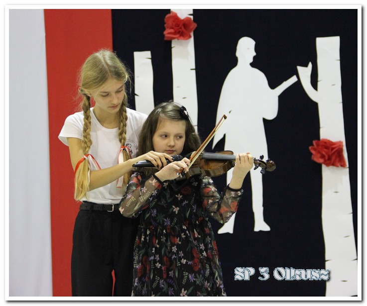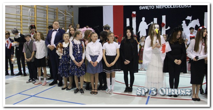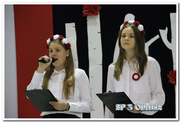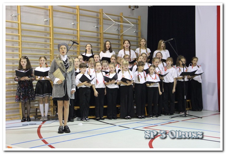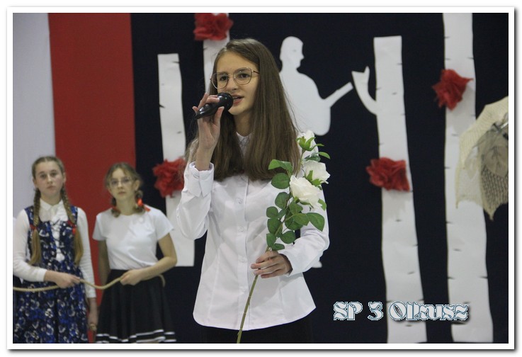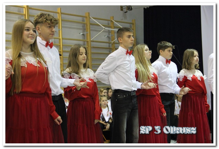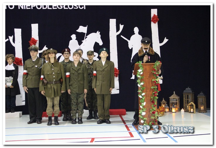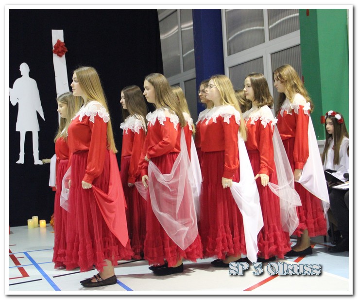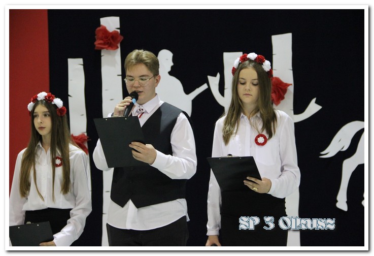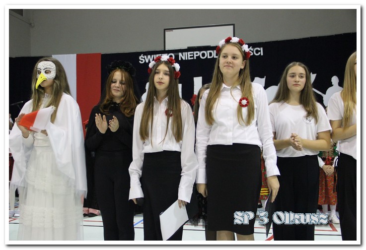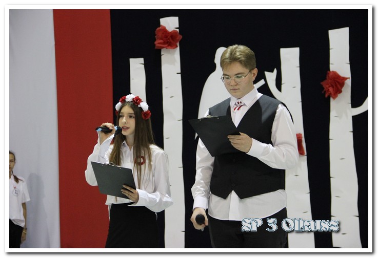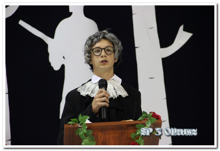 Podczas widowiska słowno-muzycznego „Niepodległość niejedno ma imię" uczniowie zaprezentowali sceny historyczne i patriotyczne, przypominając o drodze naszego narodu do wolności. Publiczność z ogromnym wzruszeniem oglądała pantomimę „Upadek Polski", a także sceny „Trzy pokolenia" i „Wybory patriotów".